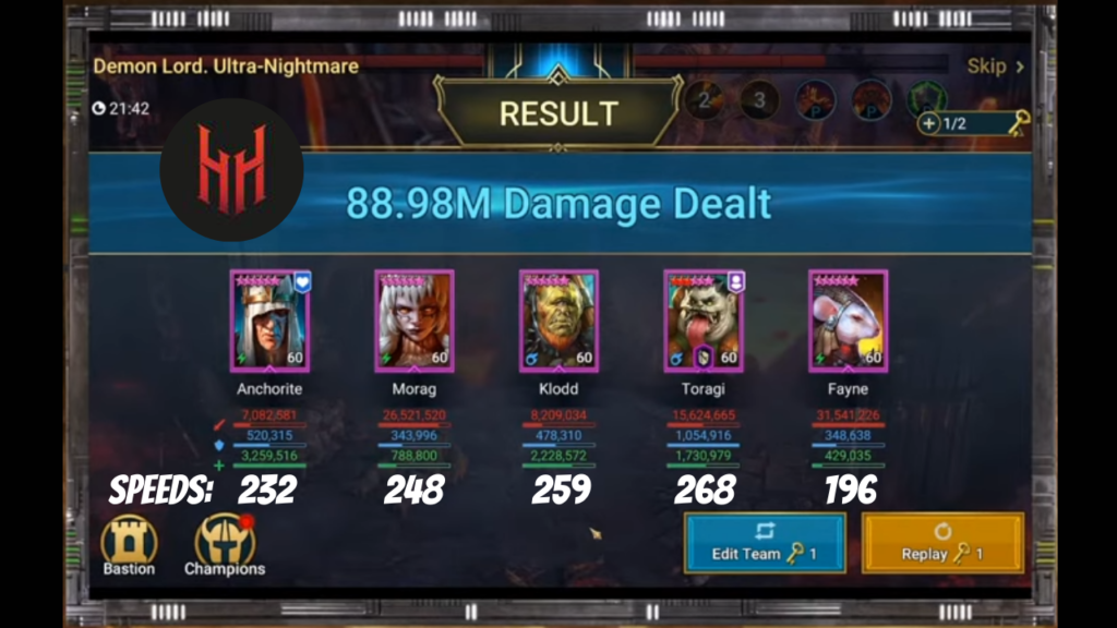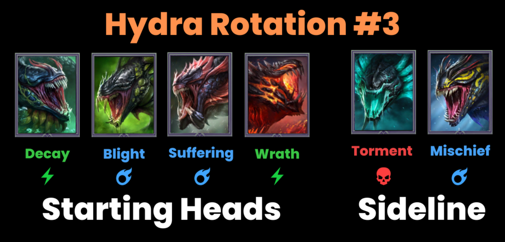 Thirdly hydra is long form content and therefore damage mitigation is your best friend. To succeed in hydra, you will have to survive all the bullshit which hydra throws at you for an extended period. Therefore, stack your champions to their gills with defense and other ways of mitigation. What may seem like insignificant amounts of damage will by turn 100 most likely be your best source of damage.