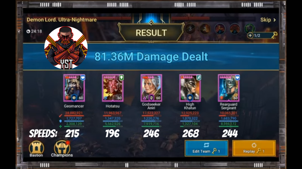 Support champions: Sometimes while getting to 12-6 brutal, you will get stuck passing stage or 3* a stage. For those situations, you want a good support champ to back up your farmer. Warpriest you get for free and can really help with her heal and increase atk. Other great rare champs to look for are Lambur, apothecary, reliquary tender, and any other champ that has a heal and/or revive. This will be a champ you want to take to 40 or 50 and feed to your farmer once you can safely farm 12-6 brutal.