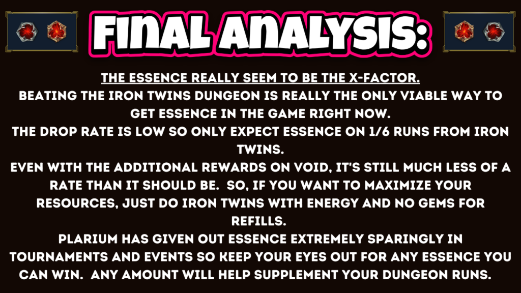 CvC, tournaments, and events: Personal rewards cvcs can really jump you ahead towards hitting 50 if your clan wins. The energy that comes from just participating is also nice. Tournaments and events can also give a lot of energy and gems. These should be done for energy and gems if they aren’t taking you out of the campaign. Dungeon divers, champ training, and arena are all good for this purpose. Artifact enhancement can be nice if your farmer is already farming 12-6 brutal.